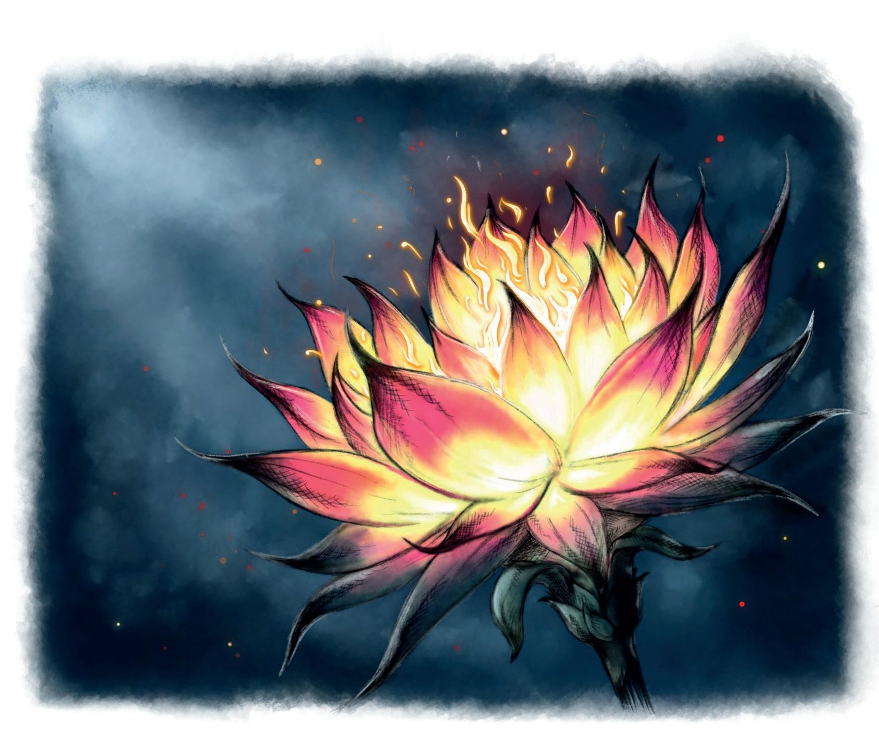 Chvíli jsme pokračovaly voňavým lesem. Pak se mamka zastavila a ustoupila stranou. Zatajila jsem dech. Na mýtině před námi se tyčilo několik mohutných staveb, obrostlých smaragdo ‑ vým mechem. Byly úplně jiné než naše dračí domky – zdály se mnohem starší a mocnější, jako by pulzovaly energií.