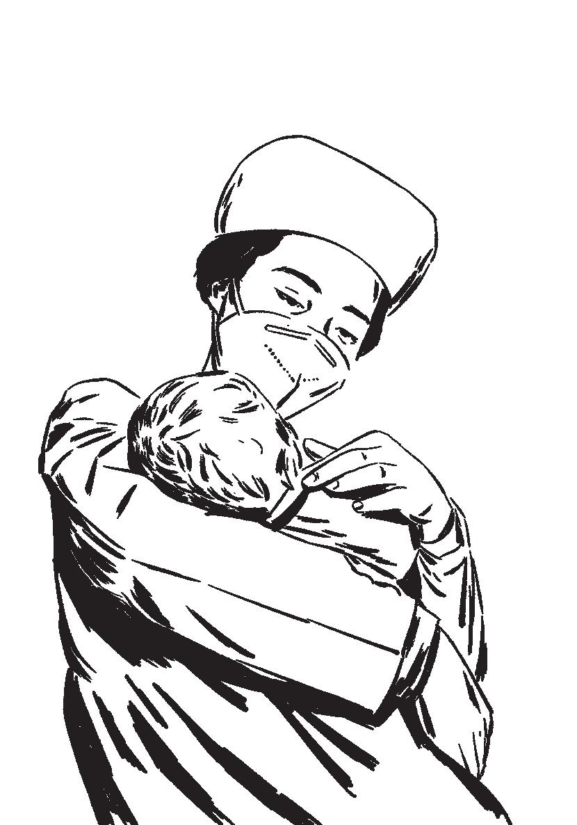 HaN Či-miN: Naše nemocnice nejsou jako ty vaše. U nás se v nich většinou netopí. V zimě teploty klesají hluboko pod bod mrazu a v nemocnici je hrozná zima, což je nebezpečné nejen pro matku, ale i pro dítě. Doma jsou oba v teple nebo mají alespoň deky na přikrytí. V nemocnicích chybí základní léky, rukavice a další zdravotnický materiál. Vše je rozkradené nebo to stát do nemocnic vůbec nedodává. A k výbavě, kterou dodá, se dostanou jen nejvýše postavení. Pouliční doktoři a sestry mají potřebné vybavení. Seženou si ho na černém trhu, v Číně nebo ho jednoduše ukradnou v nemocnici. Prostě jsou lépe připravení.