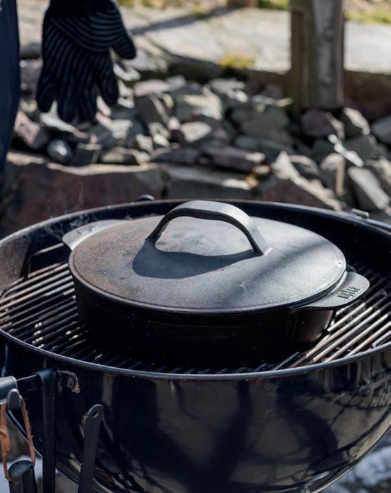 Pokud je naopak váš dutch oven zářivě čistý, měli byste hrnec nejprve při vysokých teplotách vypálit rostlinným olejem (podobně jako u železné pánve) (viz str. 12 – Jak hrnec správně vypálit a proč?).
