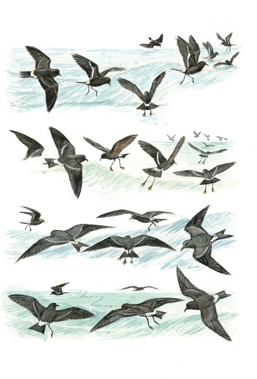 Buřňáček malý – létá jako netopýr, jedinečně křehký a třepetavý, skoro nepřetržitě mává, krátce plachtí. Blízko vodní hladiny. Často zmítaný/ unášený větrem.