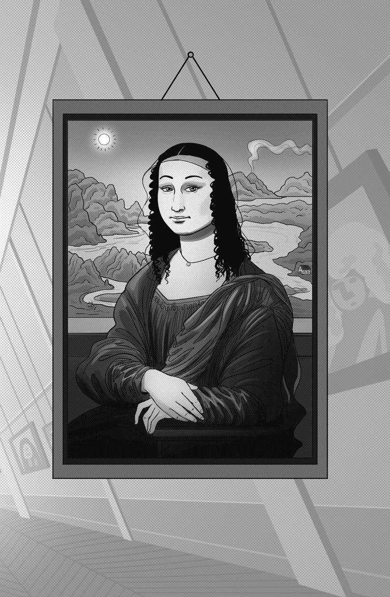 Když ale poslední den svého pobytu v Paříži zajdeš obraz naposledy zkontrolovat, něco se ti na něm nezdá. Pozorně si ho prohlížíš z různých úhlů a okamžitě je ti jasné, že obraz, který teď visí na zdi, je padělek a že pravá Mona Lisa je pryč. Dokážeš najít deset rozdílů mezi pohlednicí s originálním obrazem a tím, který teď visí v muzeu?