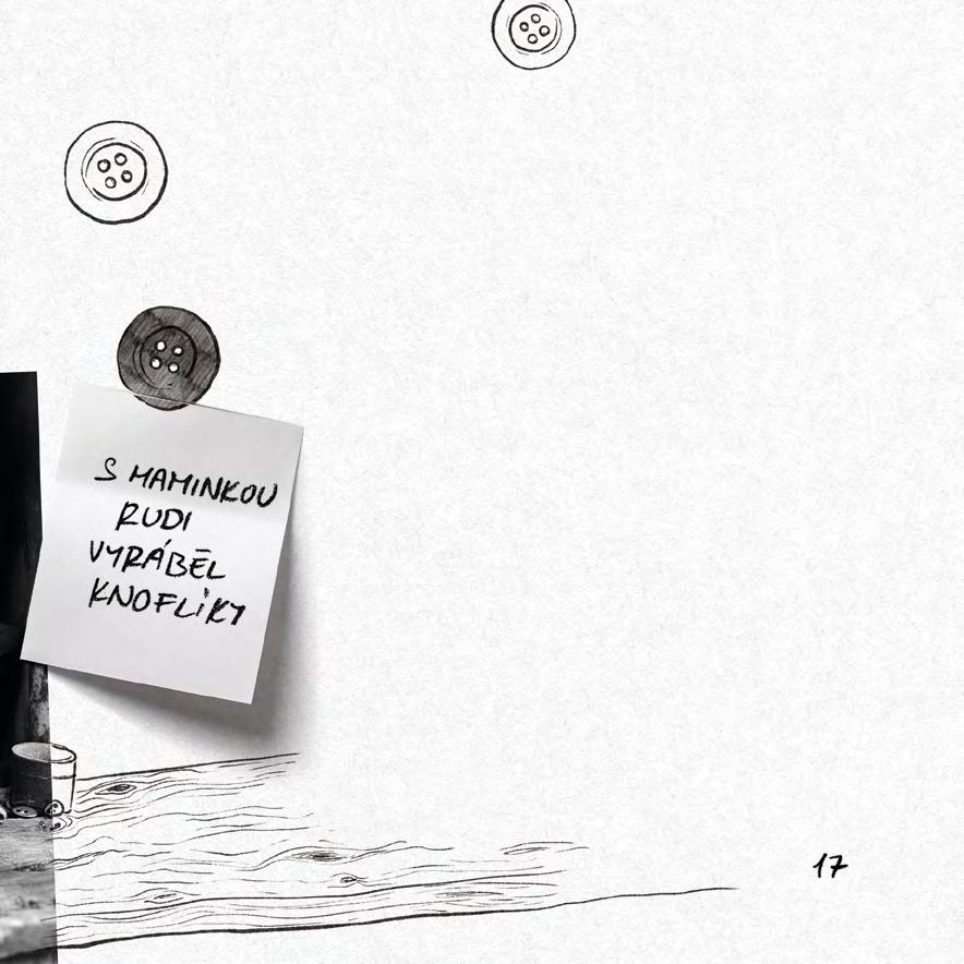 Společně vyráběli knoflíky. Nitěné, které si pak hospodyně přišívaly na cíchy, knoflíky jemné, čistě bílé. Maminka na to měla ruce a trpělivost. Rudi hotové výrobky přišíval na papírové kartičky a odnášel do výkupny. Výdělek mamince do poslední koruny odevzdával. Vyučil se nakonec truhlářem, ale šikovný na ruce moc nebyl – když se město po válce na pár let stalo okresním, pracoval ve Svinech na úřadě.