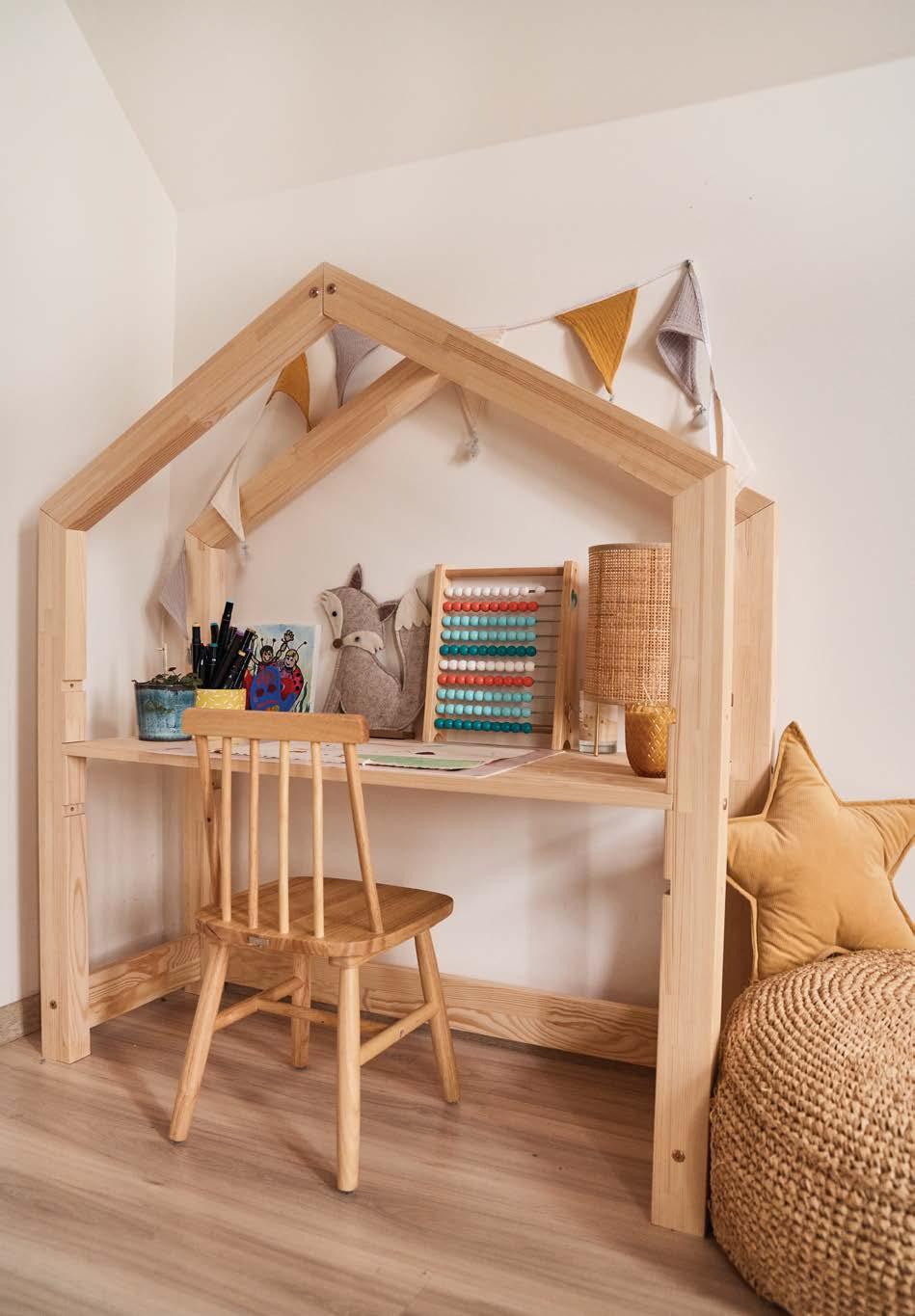 Jiříkův pokojíček jsme nedávno zařizovali, dřív v něm byla jen postýlka. Když ráno vstane brzy, může si tu hrát a kreslit, ale většinu času trávíme dole všichni společně.