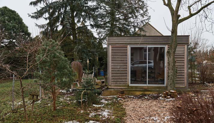 Z pracovny na zahradě je krásný výhled. Akorát v zimě se hůř vytápí.