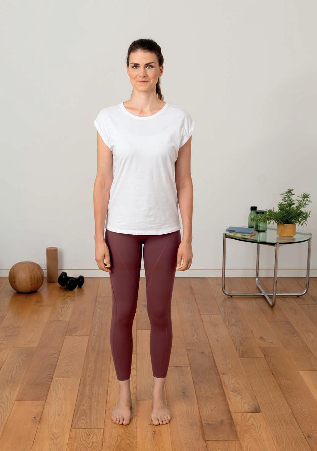 • Rozprostřete přitom váhu rovnoměrně na obě nohy a vytáhněte se v páteři nahoru.
