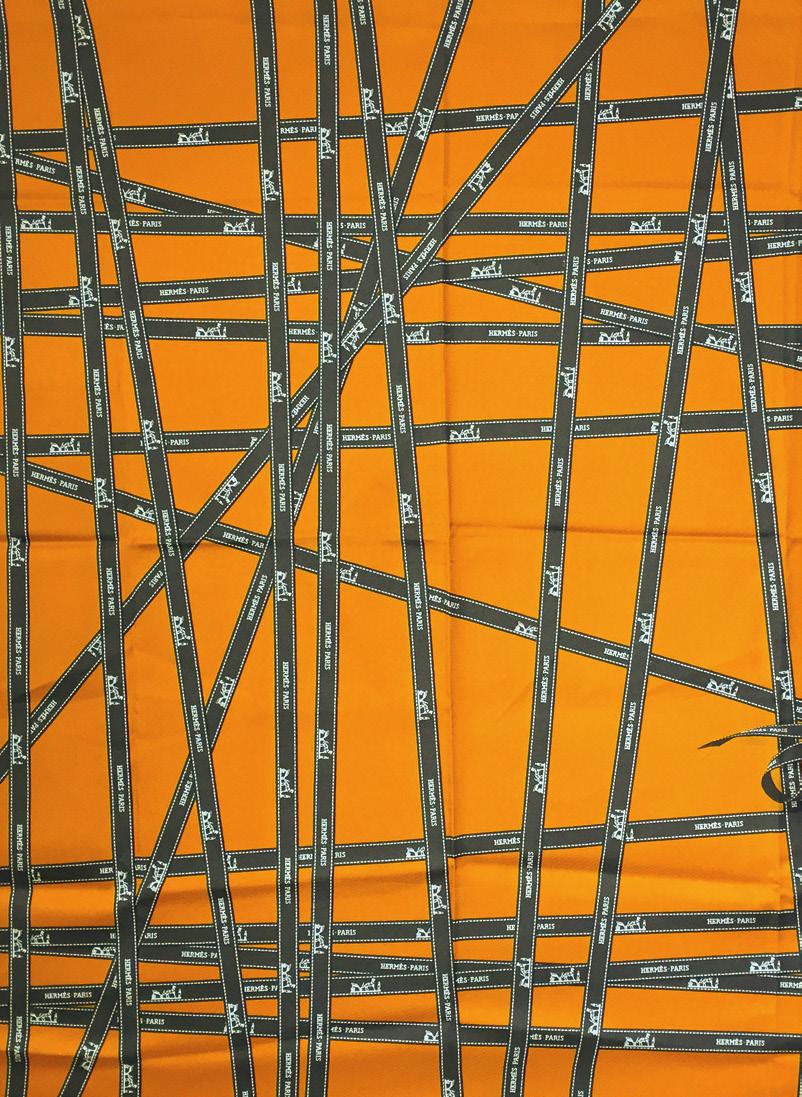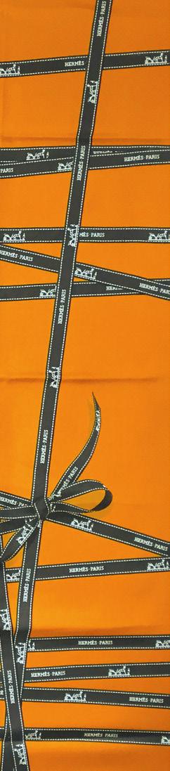 Na předchozí dvoustraně: Šátek Bolduc, který svým designem odkazuje k ikonické krabičce a stužce Hermès, vytvořil Jean-Louis Dumas v roce 1983.