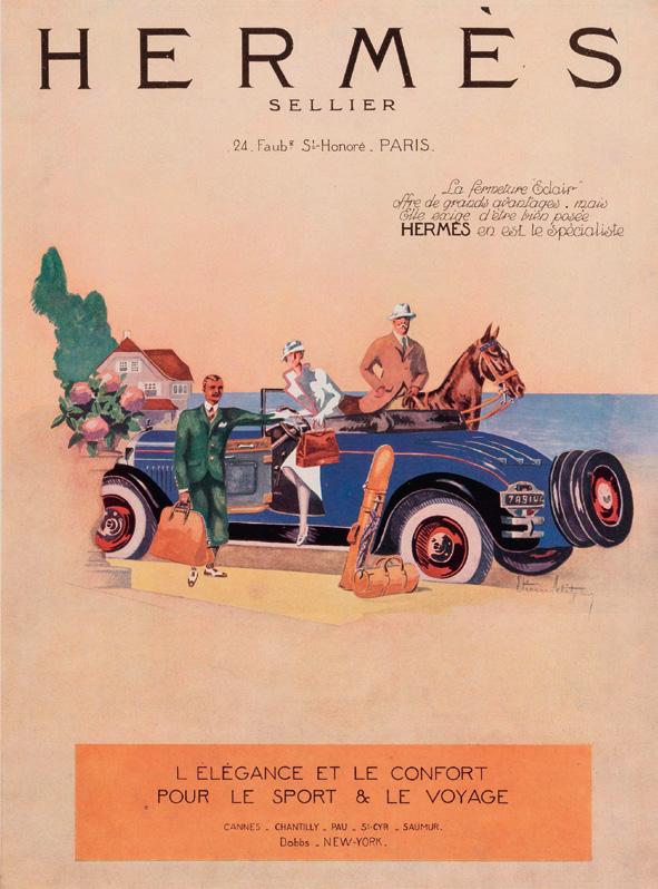 Nahoře: Vzácný plakát Hermès z roku 1926, který sloužil jako reklama na cestovní a sportovní zavazadla.