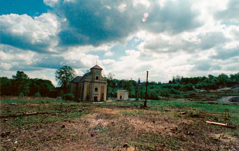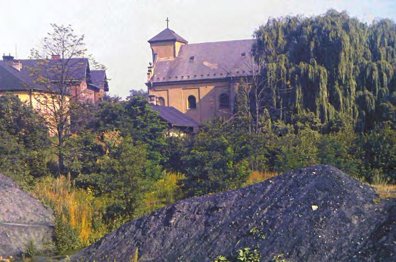 ↑ Okolí kostela před rekultivací v roce 2000. Foto: Sbírka Římskokatolické farnosti Karviná-Doly