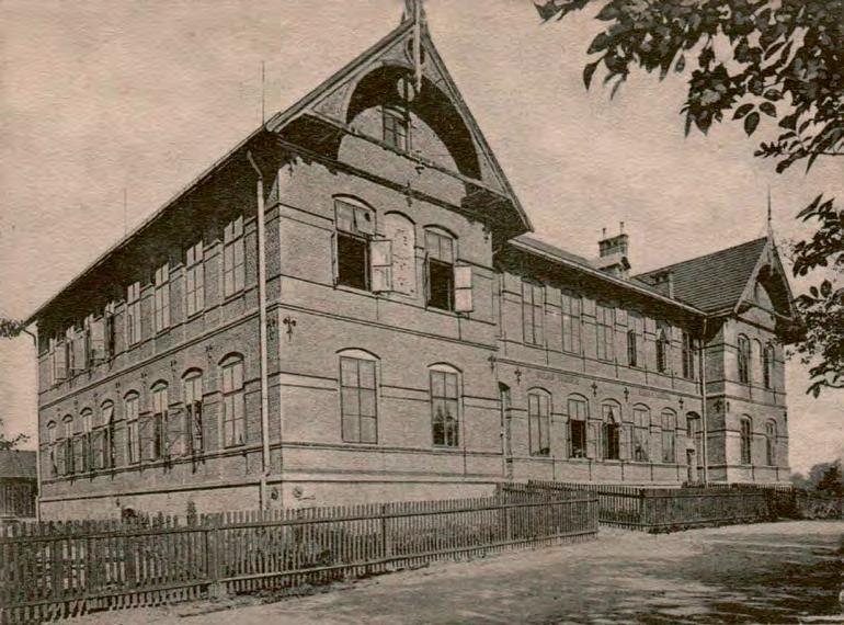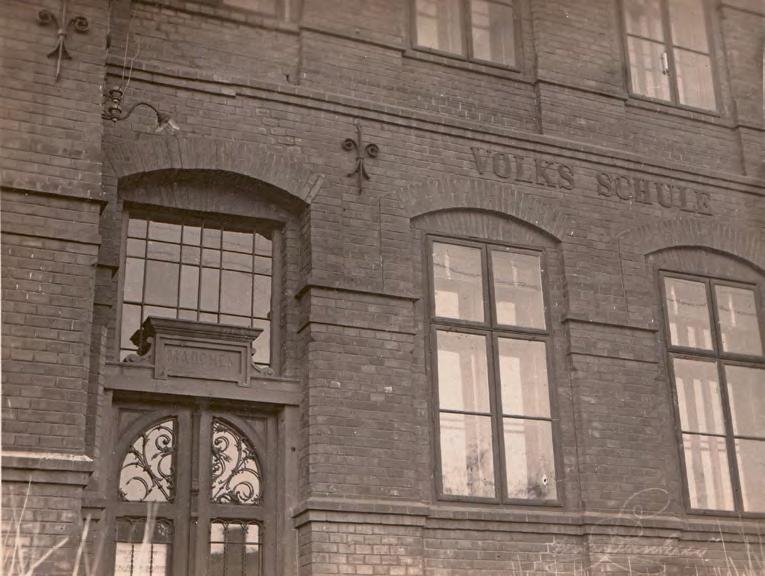 ↑ Vstup do levé části budovy Volks Schule, určený pro „Mädchen“ – dívky. Foto: Sbírka po Jindřichu Wernerovi
