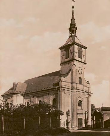 ↑ Kostel sv. Petra z Alkantary s vysokou věží, kterou měl do konce 19. století. Foto: Státní okresní archiv Karviná