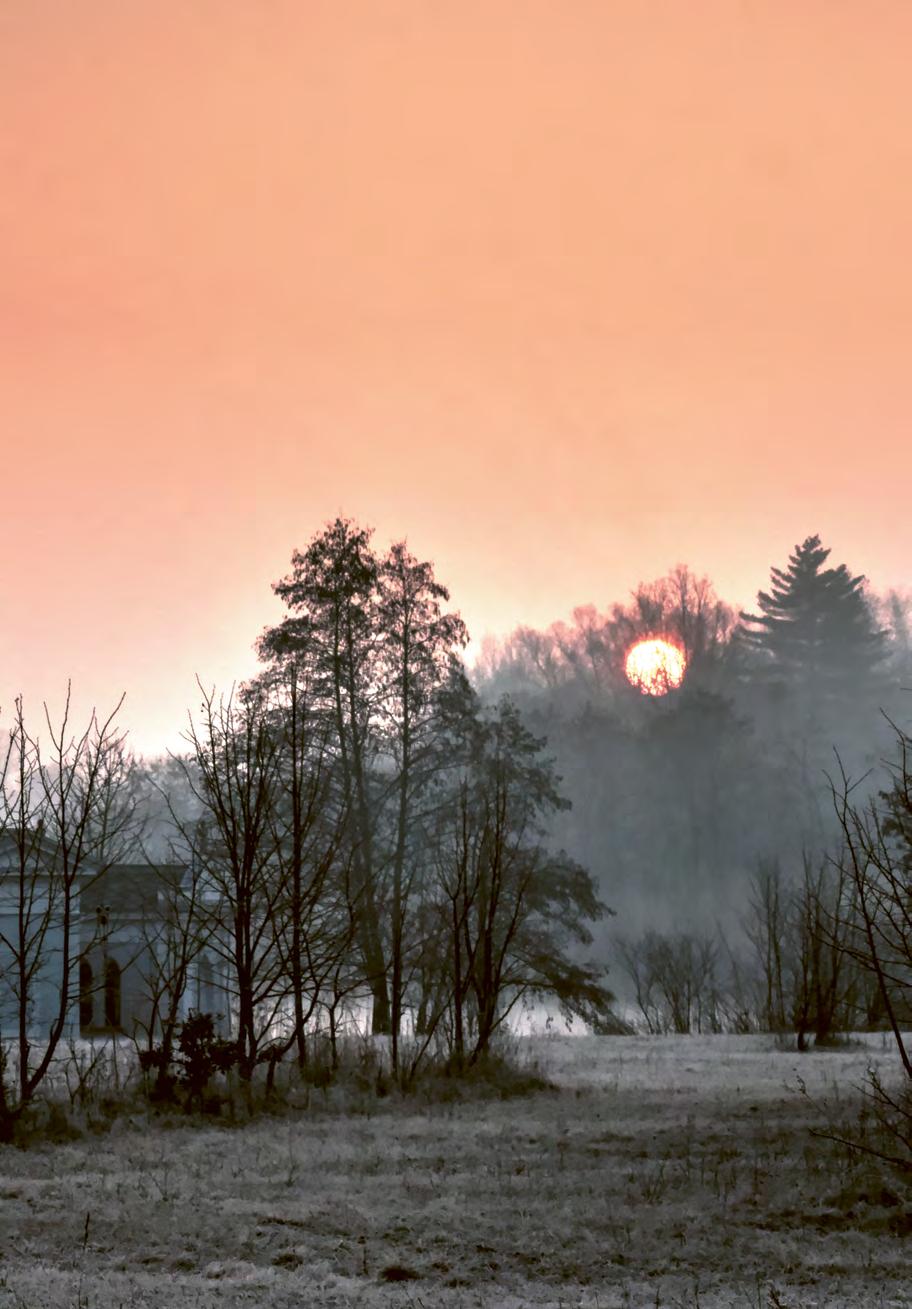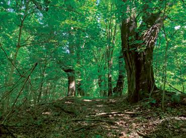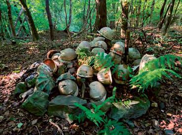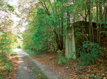 cihlové zdi. Jde o dodnes zachovalý sklep vedle větrní jámy dolu Gabriela. Sklep tvoří dvě místnosti, do kterých se dá dostat dvěma způsoby: buď náročněji – prolezením z místa, kde stojíme, nebo vyšplháním na kopec, odkud je z druhé strany do sklepa přístupné schodiště. Podle pamětníků sloužil kdysi sklep jako sklad zeleniny. O kousek dále, na stejné straně ulice, budeme míjet místa, kde stály tři dřevěné finské domky, postavené v roce 1950. Poslední přeživší zde stál osamocený až do roku 2008. Cesta s alejí se nám pomalu svažuje až k šedému plynovému potrubí; jeho dřevěné podpěry můžeme pohodlně využít jako schody a potrubí tak přelézt. Hned naproti se nám ukáže novodobý památník „helmovník“ 3 . Jaký se k němu váže příběh? V 70. letech jezdíval jistý důchodce na kole do skladu dolu Gabriela (tehdy Mír) pro vyřazené přilby. Ty vždy naložil na vozík, dostal „malý peníz“ a měl je zavézt do sběru. Místo toho však pokaždé ujel jen pár desítek metrů od šachty a vyřazené pomůcky házel do rokle, kterou vidíme za helmovníkem. Tam je před pár lety objevili návštěvníci a starokarviňoci, posbírali je a vytvořili tento improvizovaný pomník a jakési memento havířiny. My jsme se příchodem k helmovníku ocitli na někdejší ulici s názvem U Závodní nemocnice*. Tato ulice byla až do počátku 50. let hlavní pěší trasou obyvatel Rajkovy kolonie a okolí: chodili tudy ke starému kostelu a jejich děti do školy. Vydáme-li se do mírného návrší, po pravé straně bude naši trasu lemovat krásná javorovo-jasanová alej, která nás dovede až na křižovatku s ulicí Slezskou. Pokud nepůjdeme směrem k helmovníku, budeme pokračovat po ulici Slezské až na vrchol kopce, kde zatáčí doprava. Těsně před potrubím, které se zvedá nad cestou, můžeme mezi nálety nalevo pozorovat mohutné stromy ze staré dubové aleje. Ta lemovala ulici
