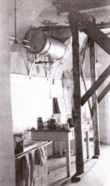 ↑ Strop kuchyně na faře v roce 1943, zajištěný stojkami proti zřícení. Foto: Sbírka Římskokatolické farnosti Karviná-Doly