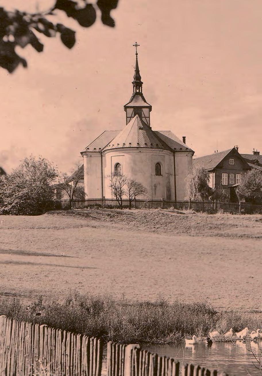 ↑ Kostel s hrázděnou věžičkou, kterou v roce 1957 shodila vichřice. Foto: Archiv autora