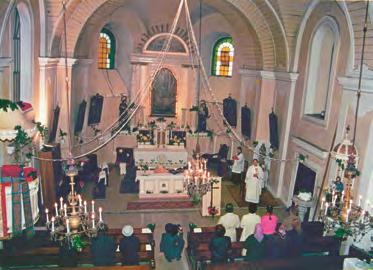 ↑ Bohoslužba v kostele počátkem 90. let, u oltáře páter Ernest Dostal. Foto: Sbírka Římskokatolické farnosti Karviná-Doly