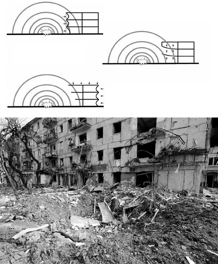 Během nárazu na cíl udělí rázová fronta vnějším součástem konstrukce či budovy značnou energii (obr. 1-9). Přetlaková vlna vyvolá pohyb těchto