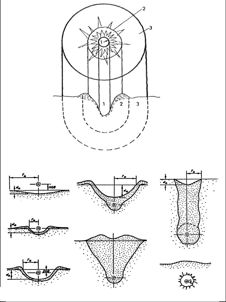 Kráterem se rozumí prohnutí a deformace půdy v okolí místa detonace (obr. 1-3). Otřesy půdy i krátery mohou způsobit značné škody na podzemních úkrytech a bunkrech i na kritické infrastruktuře. Může se jednat o záměrný