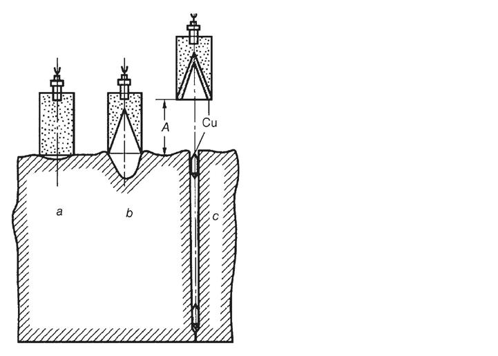 Nahoře: Obr. 1-14: Srovnání průbojného účinku obyčejné nálože a kumulativních náloží. (Zdroj: V. V. Selivanov, Boepripasy, sv. 1)
