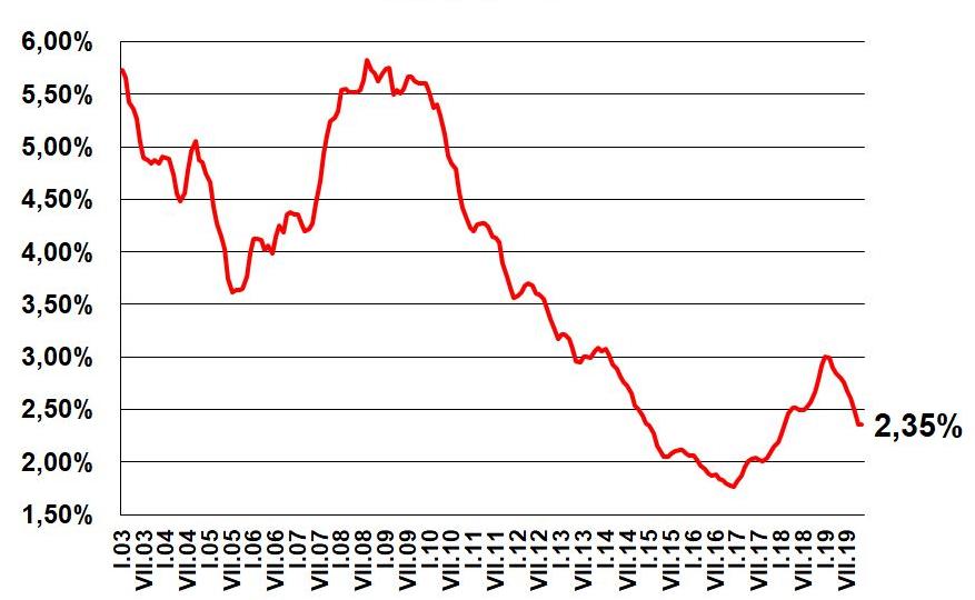 Ukázka vývoje úrokových sazeb v letech 2003-2019