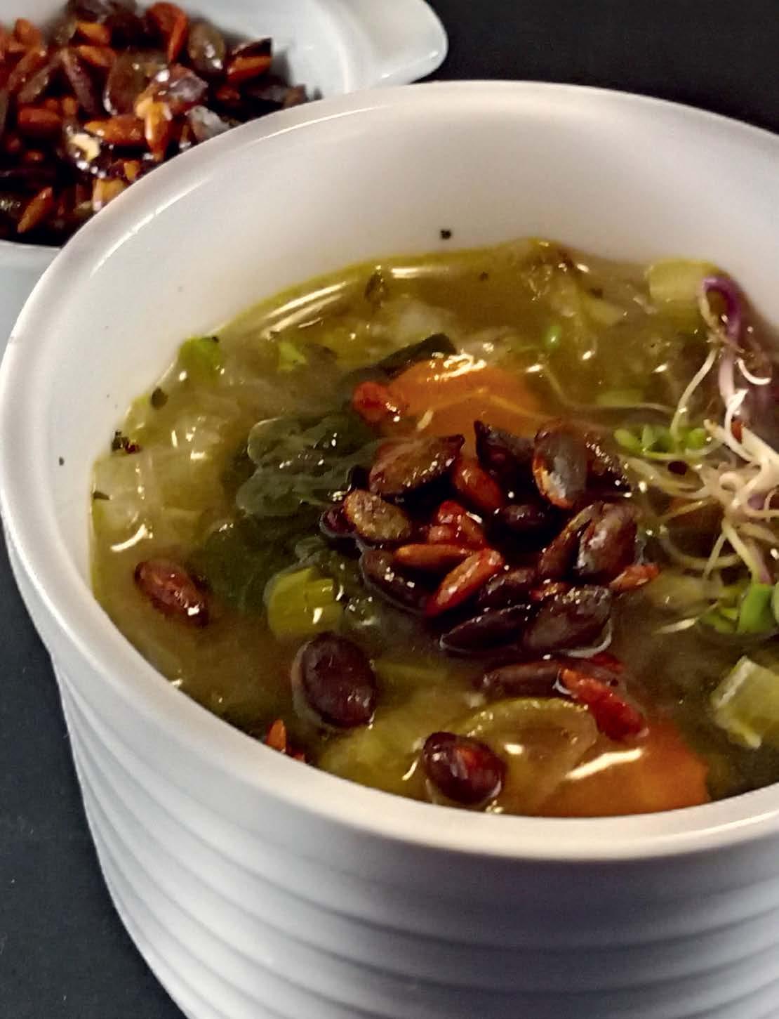 6. Polévku můžeme obohatit barevnými klíčky nebo semínky. Tím zvýšíme její výživovou hodnotu.