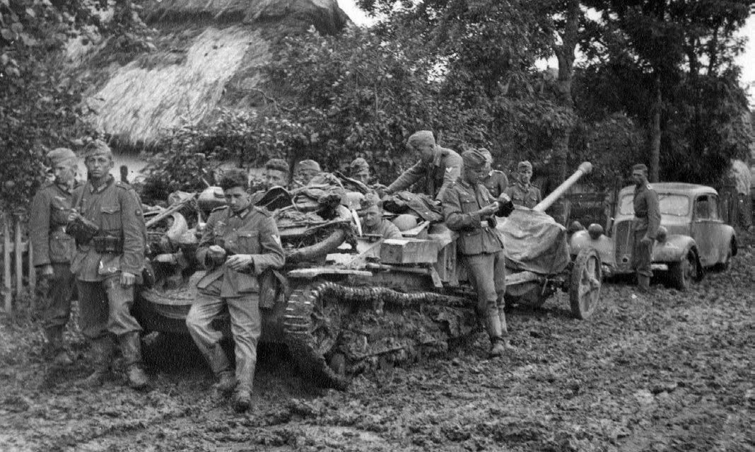 měly německé jednotky k dispozici obrovské množství použitelného vybavení. Kromě bezpočtu kolových typů to byly také tanky, pásová a polopásová vozidla. Velké množství vozidel Renault UE Chenillette (pásové vozidlo) bylo přiděleno německým dělostřeleckým jednotkám jako tahače pro lehká a střední děla.
