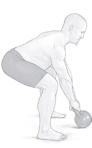 Při tréninku s kettlebelly je nesnadné izolovat konkrétní svaly, protože toto cvičení posiluje tělo v celkovém smyslu. Například při provádění tlaku s kettlebellem popsaném v kapitole 4 dochází k intenzivní izometrické aktivaci všeho od hrudního koše směrem dolů pro udržení postoje, zatímco dynamicky tlačíte kettlebell směrem vzhůru nad hlavu. Svaly provádějící tlak, především deltové svaly a tricepsy, intenzivně pracují, a současně břišní a hýžďové svaly zajišťují silnou kontrakcí izometricky posturu. Dalším příkladem je střídavý přítah kettlebellu ve vzporu ležmo popsaný v kapitole 8, který je jedním z mých oblíbených cviků. Při tomto cviku, zatímco jste v horní pozici kliku, přitahujete zátěž pravou rukou, pak levou rukou, a to opakujete po celou sérii. Pánev a dolní končetiny jsou přitom bez pohybu. Přechod z polohy, kdy máte čtyři opěrné body (obě chodidla a oba kettlebelly se dotýkají země), do polohy, kdy máte tři opěrné body (obě chodidla a jeden kettlebell se dotýkají země, zatímco druhý kettlebell zvedáte a je ve vzduchu), a zpět do polohy, kdy máte čtyři opěrné body, je to, co činí tento cvik tak fantastickým. Udržování postury nejenže dělá tento cvik náročnější a účinnější, ale také dochází k posílení daných svalů a je nižší riziko aktivace kompenzačních mechanismů, ke kterému u řady lidí při provádění tohoto cviku dochází.