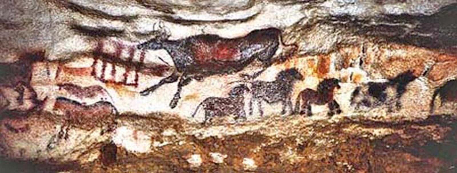 Na stěnách jeskyně Lascaux v jihozápadní Francii se nachází několik set maleb a rytin z období magdalénienu, jejichž stáří se odhaduje na 15 000 až 17 000 let. Ve Dvoraně býků jsou malby na stěnách zhotoveny výrazně cihlově červenými, okrově žlutými, hnědočernými a černými barevnými odstíny přírodních pigmentů (viz Obrázek 1.1–1.3).