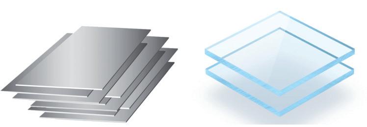 Kovové materiály se liší mechanickými a technologickými vlastnostmi, fyzikálními a chemickými charakteristikami, a to i ve srovnání s polymery. Na Obrázku 2.5 jsou ukázky rozdílu mezi kovovým materiálem (korozivzdornou ocelí) a polymerním materiálem (transparentním fluorescenčním akrylátem).