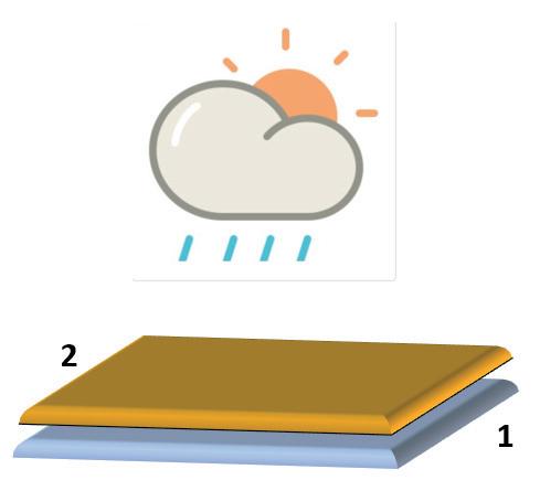 Obrázek 2.2 Vzájemná interakce systému materiál (1) / povrchová úprava (2) / prostředí.