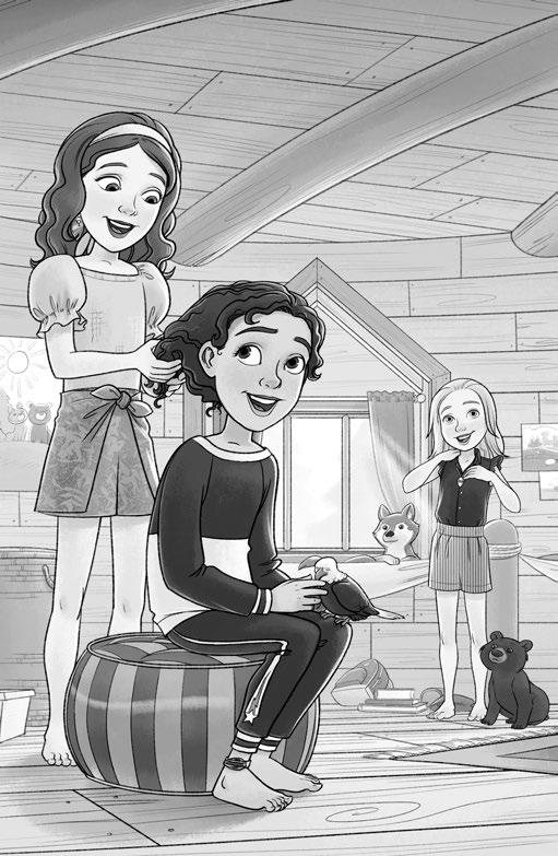 Zatímco se ranní slunce prodíralo do stromového domu, Emilka, Gábi a Klárka prohledávaly košíky ve svém pokojíčku. Byl Den přátelství. Svátek, který každý na Rozkvetlé hoře slavil vždy společně s nejlepšími přáteli. A jako sestry a zároveň nejlepší kamarádky chtěla trojčata jedna druhé vyrobit ty nejlepší dárky. „Pche,“ povzdychla si Emilka. „Fixy? Lepidlo se třpytkami? Ozdobné drátky? Mám