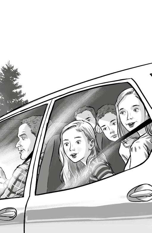 „Vzal jsem s sebou pár mentolek – můžeš je cucat, pomůže ti to.“ Táta se k ní naklonil a usmál se na ni.