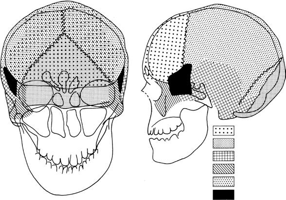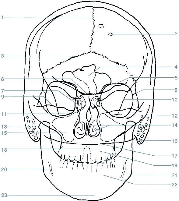 12 processus frontalis ossis zygomatici (čelní výběžek kosti lícní)