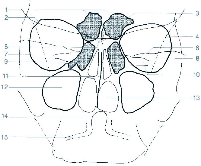 9 přední etmoidální sklípky
