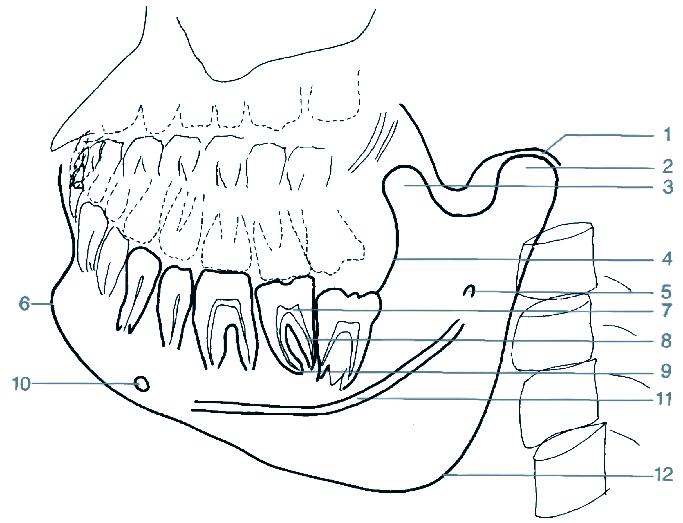 11 canalis mandibulae (kanál v dolní čelisti)