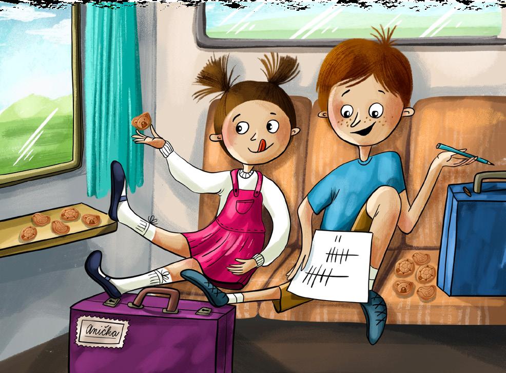 „Tady máte lístky,“ ozve se maminka. „Je to přesně patnáct zastávek. Sedněte si s Aničkou k oknu, abyste věděli, kde zhruba jste. Honzíku, ty si dělej čárky. A kdyby něco, ve vlaku najdete paní průvodčí, vůbec se nebojte ji o cokoli požádat nebo se třeba jen obyčejně zeptat. A ne že sníte všechny sušenky a u babičky pak nebudete chtít oběd,“ řekne maminka naoko přísně. „Nějaké sušenky si nechte i pro čerty.“