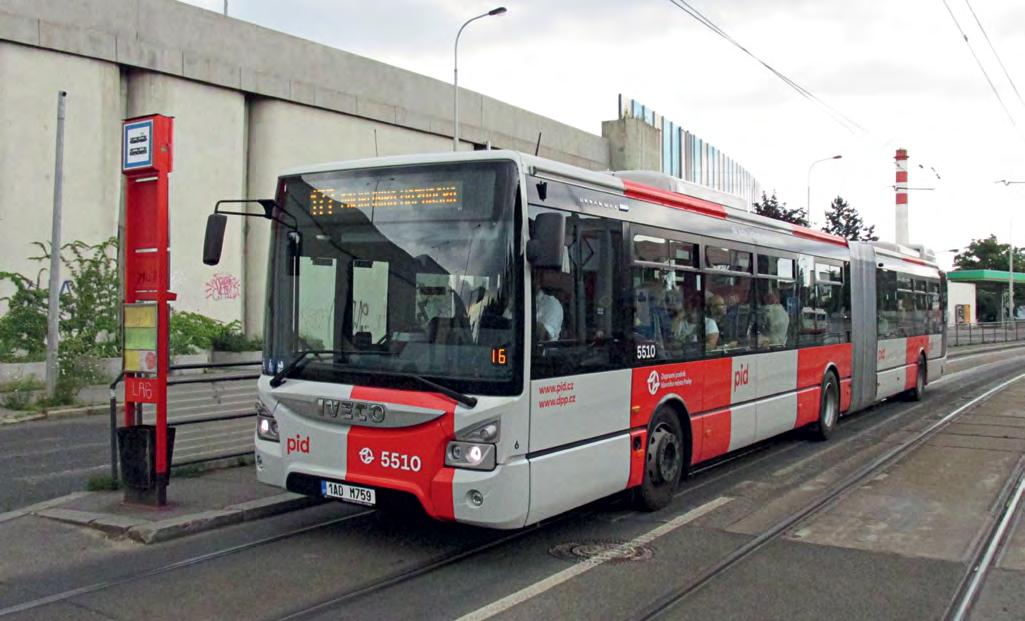 dlouhé autobusy Iveco-Streetway 12 M. Kloubové verze zastupují autobusy Iveco-Streetway 18 M a Iveco-Urbanway 18 m Hybrid s hybridním pohonem. Od roku 2009 byly (či jsou) v Praze provozovány také elektrobusy či parciální (bateriové) trolejbusy značek ZEUS, ACUMARIO, SOR, Solaris, Ekova, Škoda nebo Škoda-Solaris 24 M. V roce 2017 došlo k zavedení linky č. 58 a k otevření trolejbusové trati v Prosecké ulici. Další linka, tentokrát č. 59, nahradila původní autobusovou linku č. 119. Její trasa vede od stanice metra Nádraží Veleslavín na ruzyňské letiště. Do provozu byla uvedena v březnu 2024.