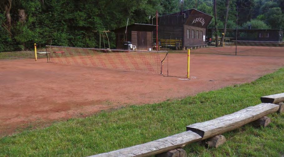 Dvě volejbalová hřiště na břehu řeky pocházela z let 1931-32. Vzhledem k poloze však byla ničena povodněmi, proto docházelo k četným úpravám a někdy zůstalo v provozu pouze jedno. Horní hřiště zaniklo za 2. světové války, obnoveno a posunuto bylo roku 1983. Spodní hřiště fungovalo do roku 2002, kdy obě hřiště zcela zničila povodeň.