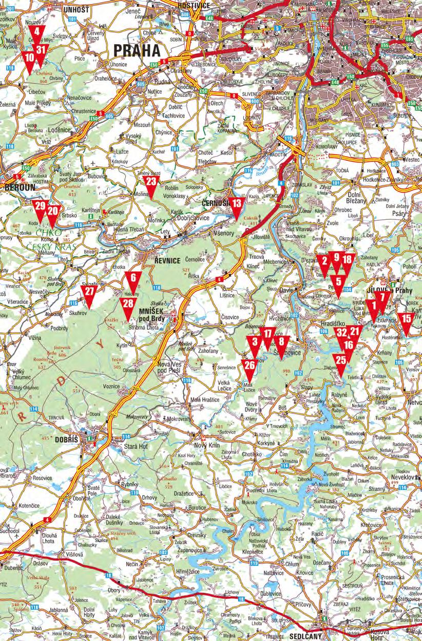 Vlakem do stanice Čisovice (vzdálenost 4,5 km) nebo autobusem do zastávky Bratřínov (1,5 km).