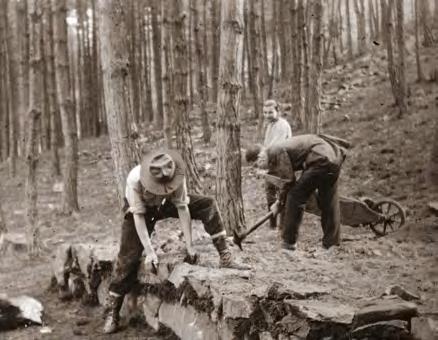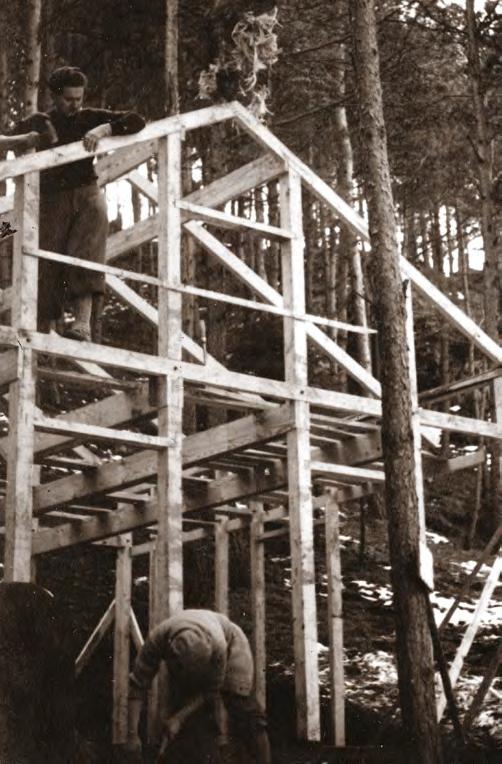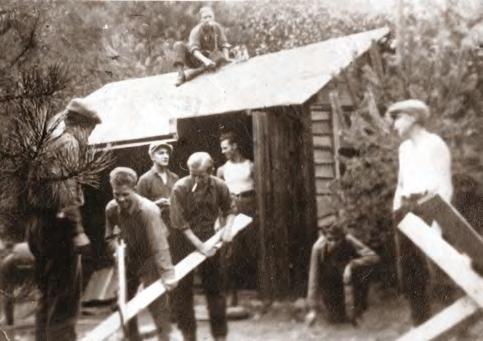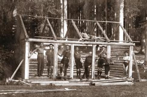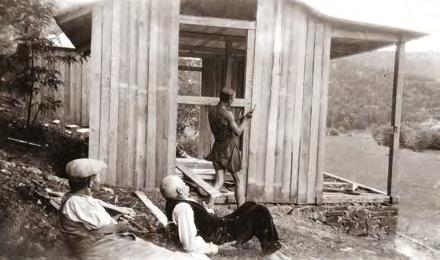 Budování základů chaty Starý Ajax (1927) Na osadě (1928)