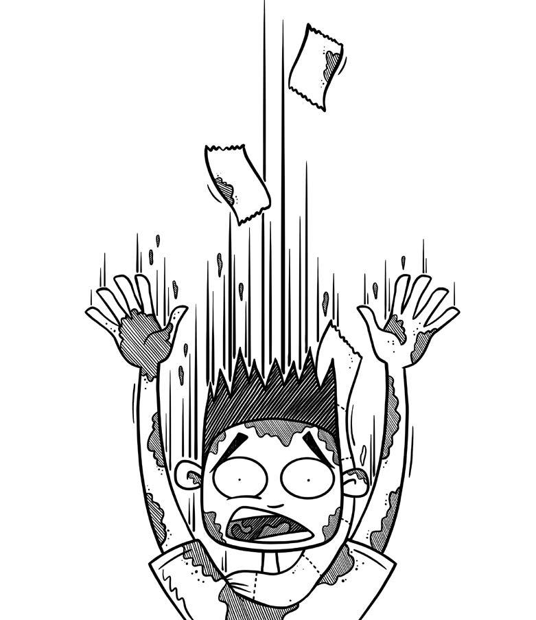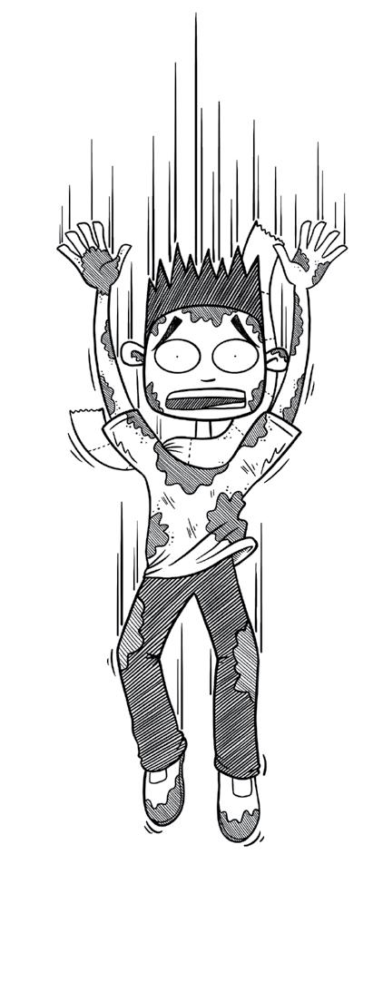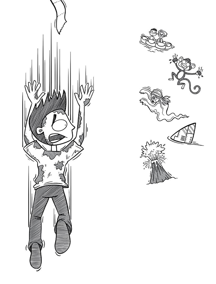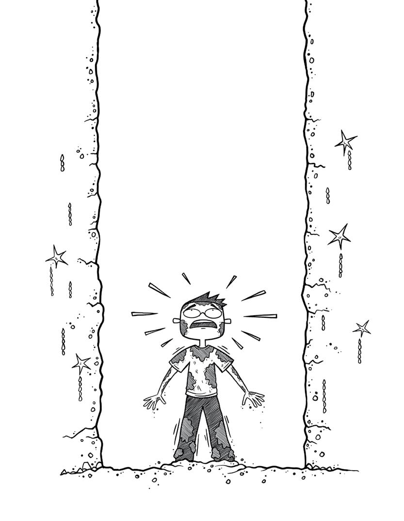 “Vstávaj!“ opäť nástojím. Snažím sa zobudiť sám seba, pretože toto musí byť určite len zlý sen. Nemohol som predsa len tak ZMIZMÚŤ v gigantickej diere v zemi, ZLETIEŤ do samotných útrob Zeme a zázračne bez škrabanca pristáť na kope neidentifikovateľnej ŠPINY. Takýto absolútne BIZARNÝ dej by neprešiel ani tým najbezočivejším autorom detských kníh.