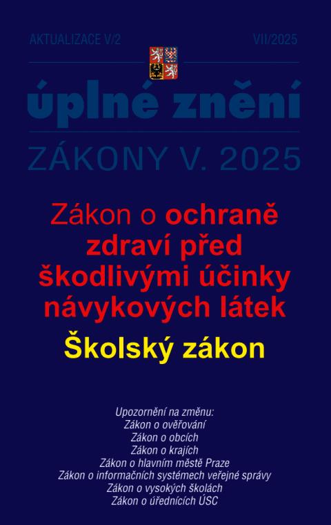 2. Zákon č. 561/2004 Sb., o předškolním, základním, středním, vyšším odborném a jiném vzdělávání (školský zákon) po novele zákonem č. 152/2025 Sb. účinnost: 1. října 2025 po novele zákonem č. 232/2025 Sb. účinnost: 1. ledna 2027 po novele zákonem č. 239/2025 Sb. účinnost: 1. září 2025, 1. září 2026, 1. září 2027, 1. září 2029