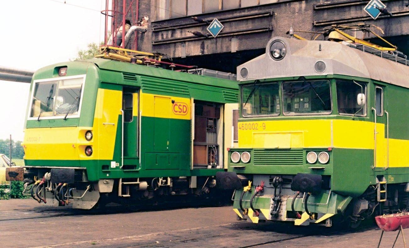 V bohumínském depu se 11. 6. 1991 sešly dvě prototypové jednotky se stejným inventárním číslem – 460.002-9 a 470.002-7. Foto Jiří Adamovský.