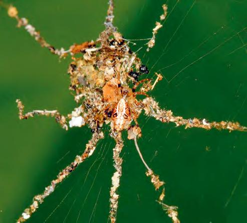 ◆ Najdete pavouka na níže uvedené fotografii? Ne, to není on. Osminohý obr, kterému pavučina zdánlivě patří, je ve skutečnosti falešný, vyrobený speciálně proto, aby oklamal velká zvířata, jako jste vy.