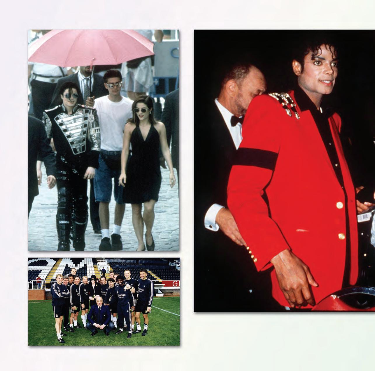 Vlevo: V pozdějších letech se Michael začal zajímat o britský fotbal, nejprve díky svému přátelství s Mohamedem Al-Fayedem (majitelem FC Fulham) a později s Uri Gellerem (FC Exeter City).