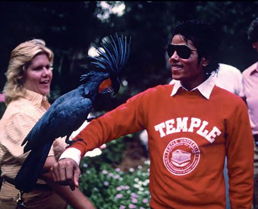 Dole: Michael drží kakadu palmového během své návštěvy Disney Worldu na Floridě, 21. listopadu 1984.
