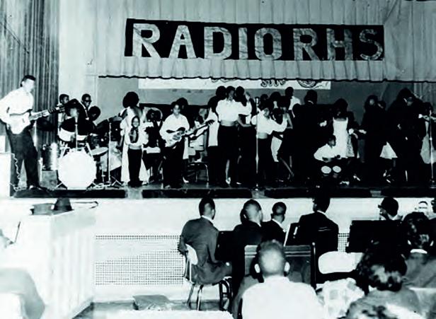 Jacksonovi na pódiu na Rooseveltově střední škole za bungalovem rodiny Jacksonových v Gary ve státě Indiana. Jednalo se o první veřejné vystoupení v roce 1965. Sestava zleva doprava: Reynaud Jones na sólovou kytaru, Milford Hite na bicí, Marlon na tamburínu, Tito na rytmickou kytaru, Jackie zpěv, Jermaine zpěv a Michael hraje na vypůjčená bonga. Milford Hite vzpomíná: „Máma nám všem ušila frakové pásy, na kalhoty jsme si našili červené pruhy a kolem krku uvázali kravaty.“
