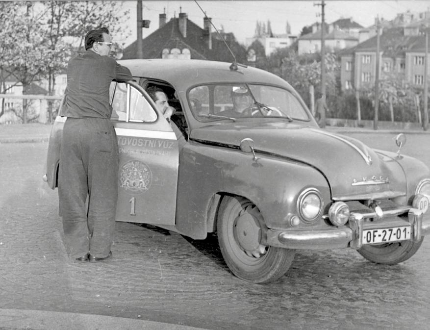 Snímek z konce 50. let 20. století zachycuje automobil Škoda 1201. Mohutná anténa na střeše vozidla dokládá osazení pohotovostního vozidla radiostanicí FREMOS.