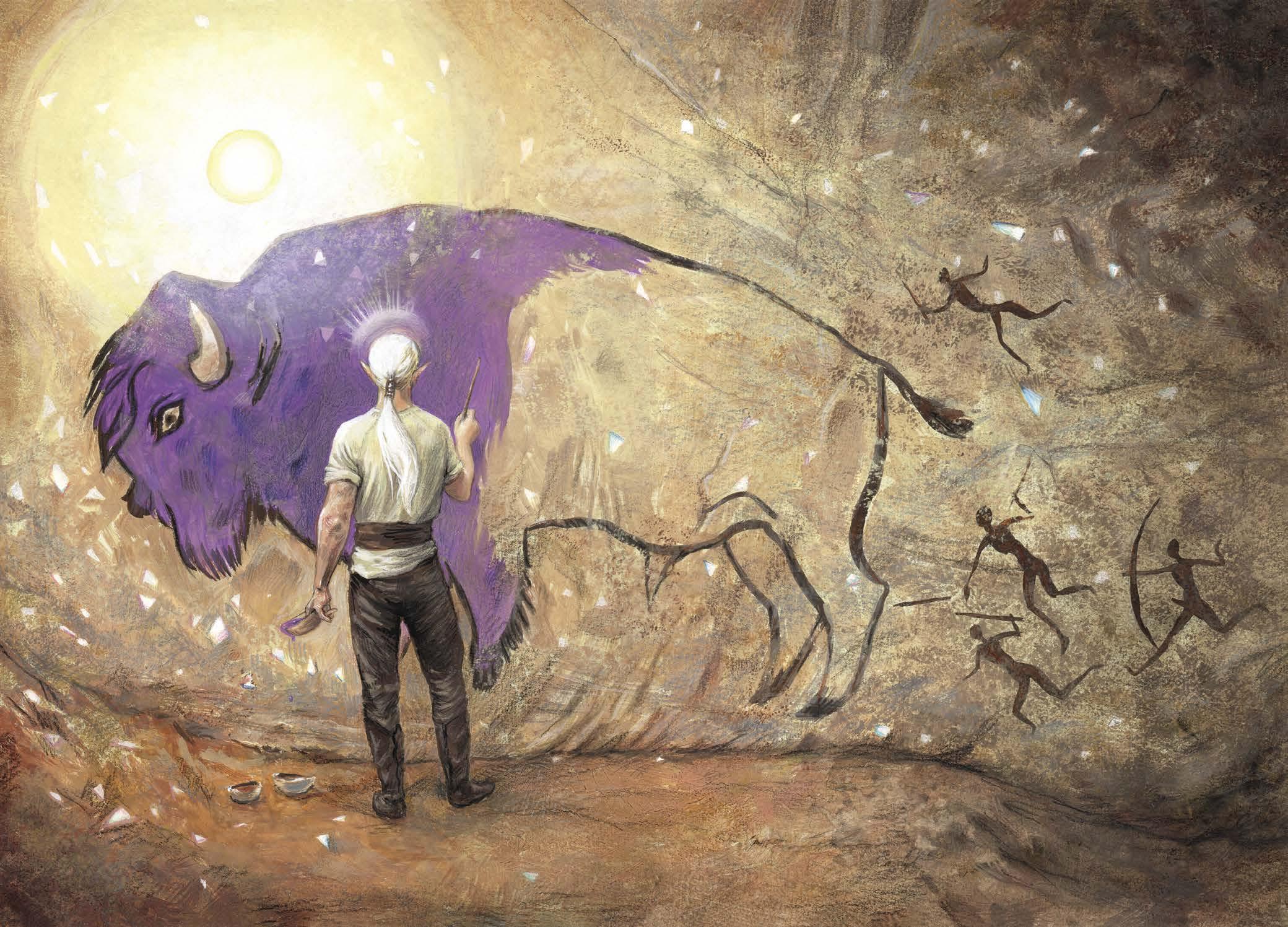 Na rovné stěně, kterou snad příroda záměrně připravila k tomuto účelu, právě vznikala obrovská skalní malba. Jejím autorem byl vysoký, plavovlasý elf v barvou umazané kytli. Přirozené i magické světlo tvořilo kolem jeho kučeravé hlavy zářící gloriolu. Věž vlaštovky