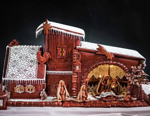 Betlém oceněný zlatou medailí na Moravském cukrářském šampionátu v roce 2021. Tradiční techniky zdobení perníku se v něm snoubí s novátorským způsobem
