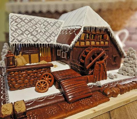 Jak se říká, třikrát a dost, to byla moje myšlenka… ať je téma, jaké chce, du do toho, potřetí a naposled. Téma bylo vodní mlýn. Načerpané zkušenosti mě intuitivně vedly, přesně jsem věděla, jak bude třetí dílo vypadat. K atraktivním krajkám a vytlačovanému perníku jsem přidala další konzistence, např. strouhaný perník, který symbolizoval mouku vysypanou na dvorku mlýna, perníkové kameny, složené do kamenné zídky, světýlka, která celý mlýn nádherně prosvítila. Cítila jsem velkou pokoru a pocit naplnění, když jsem potřetí stála před porotou a obhájila svůj velký perníkový hattrick.