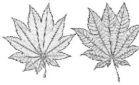 ‘Palmatifolium’; velký keřovitý stromek 6–8 m vysoký nebo vyšší a asi stejně široký; listy asi 10 cm velké, 11laločné, hlouběji rozeklané, téměř až k bázi, špičky laloků jsou úzké a ostré, okraj pilovitý a slabě dolů stočený, na podzim nápadně svítivé, šarlatové a oranžové až zlatožluté